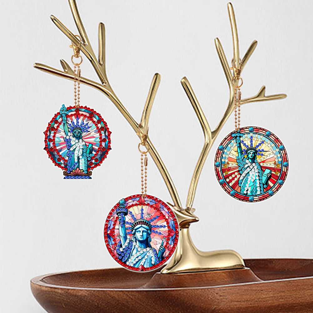 6Pcs DIY Statue Of Liberty Special Shape 5D Diamond Art Keychain for Birthday