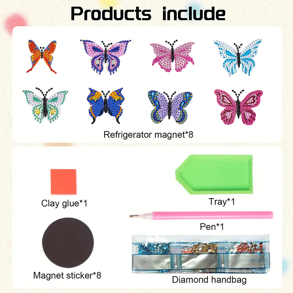 8Pcs Special Shaped Butterfly Diamond Painting Fridge Magnet Fridge Stickers