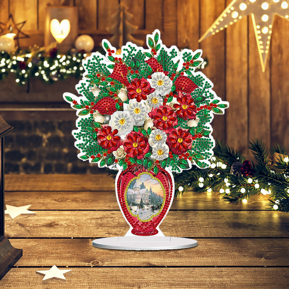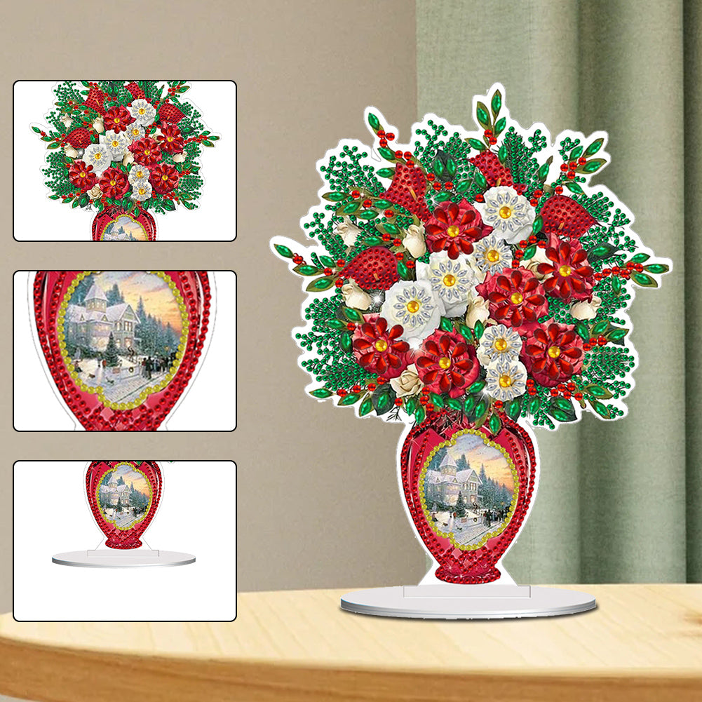 Round+Special Shape Diamond Painting Tabletop Ornaments Kit Acrylic 5D DIY Diamond Art Tabletop Decorations Bouquet Table Top Diamond Painting Ornament Kit for Office Desktop Decor