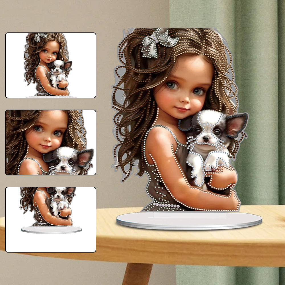 Diamond Painting Tabletop Ornaments Kit Acrylic Table Top Diamond Painting Ornament Kits Little Girl 5D DIY Diamond Art Tabletop Decorations for Home Office Decor