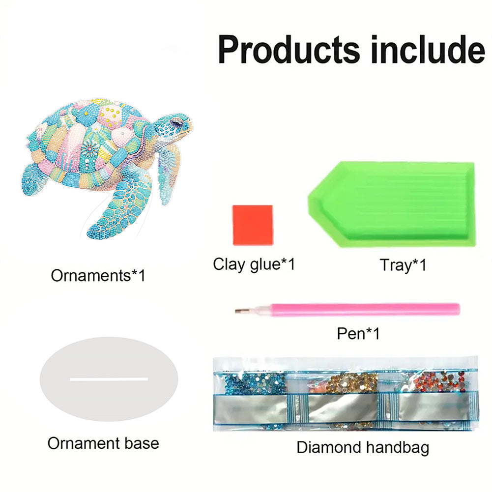 Acrylic Sea Turtle Diamond Painting Tabletop Ornaments Kit Table Top Diamond Painting Ornament Kits for Home Office Decor