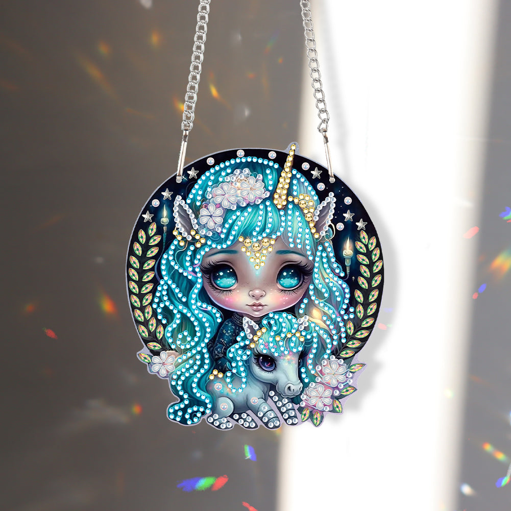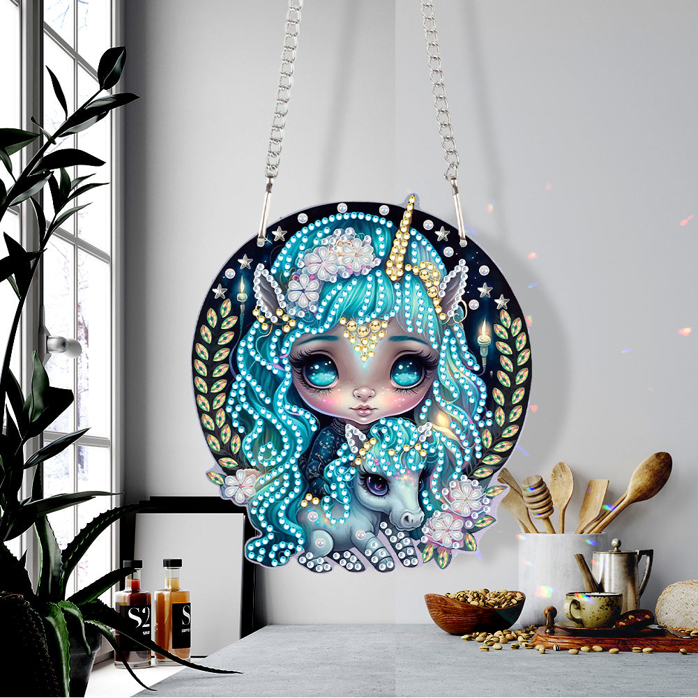Acrylic Round+Special Shape Diamond Art Hanging Pendant Single-Sided Crystal Hanging Home Wall Decor 5D DIY Diamond Painting Dots Pendant for Garden Window Decoration